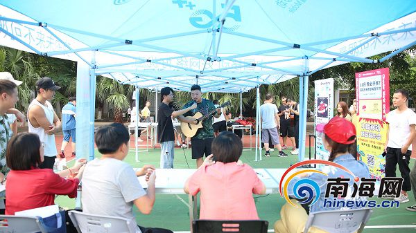 16時開始,海南職業技術學院的運動場上人頭攢動,參賽選手的歌聲讓學校操場變得十分熱鬧。說唱、民謠、吉他彈唱……五花八門的精彩節目接連上演,獨唱選手和樂隊輪番上陣,吸引了眾多學生駐足觀看,不少學生現場報名參賽,一展歌喉。而在一旁的評委老師也被選手精彩的表演吸引,時而鼓勵選手放松參賽,時而鼓勵選手再唱一曲。