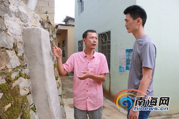 五指山市住建局工作人員與什會村黨支部書記、村委會主任王國友交流農戶無害化廁所改造細節。南海網記者 葉子青 攝