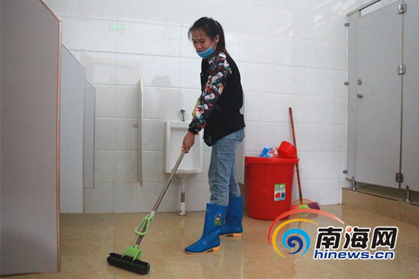 貧困戶王亞漫作為管理人員,負責維護旅游廁所的衛生。南海網記者 葉子青 攝