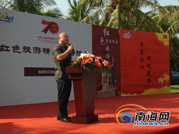 儀式現場,海口市旅行社協會秘書長麥偉文推介了3條海南紅旗之旅精品線路。據介紹,本次推介的精品線路設計合理,串聯海南的紅色文化旅游資源,充分展示了海南的地方特色及文化。