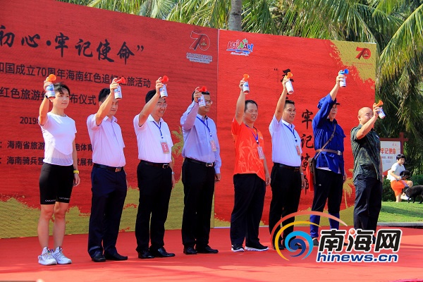 南海網、南海網客戶端海口9月21日消息(南海網記者 蘇靚)9月21日,以“不忘初心 牢記使命”慶祝中華人民共和國成立70周年為主題,由海南省旅游和文化廣電體育廳主辦的海南紅色追憶之旅活動在??谑邪咨抽T公園渡海英雄紀念碑廣場前舉行?;顒游松锨忻瘛⒂慰屯讲?,從白沙門渡海作戰紀念廣場出發,途經騎樓老街、中共瓊崖第一次代表大會舊址等地,到達人民公園海南革命烈士紀念碑終點,全程共10公里。