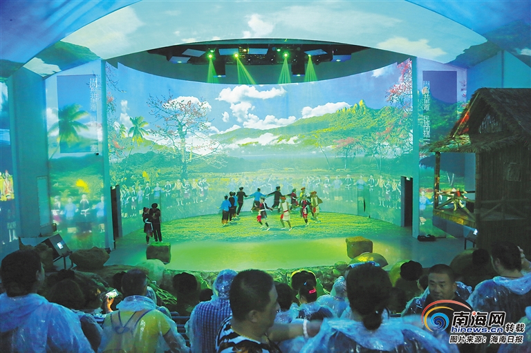 10月1日上午10點,“風雨情深”迎來首批游客,場內人氣爆棚。全息空間成像技術與民族歌舞完美融合,交織成美輪美奐的熱帶海島風情畫卷。