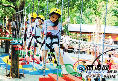 10月3日,小游客在海口火山口地質公園親子樂園體驗火山攀爬體驗、空中叢林穿越等游樂項目。海南日報記者 張茂 通訊員 熊麗 攝