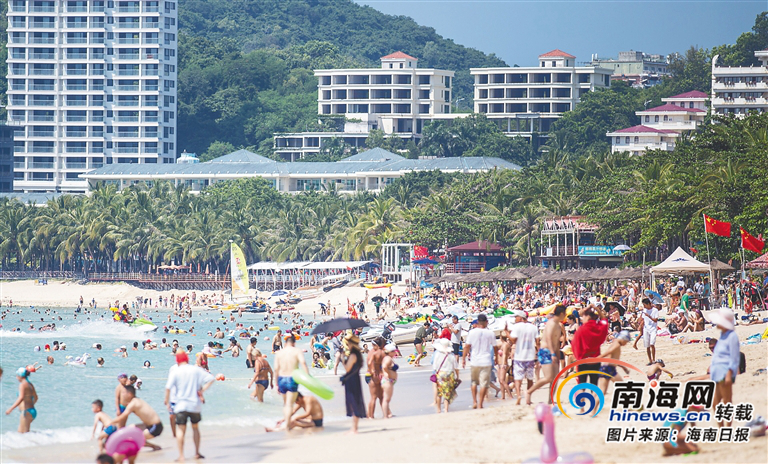 10月2日,天氣晴好,三亞大東海景區游客如潮。 海南日報記者 武威 攝