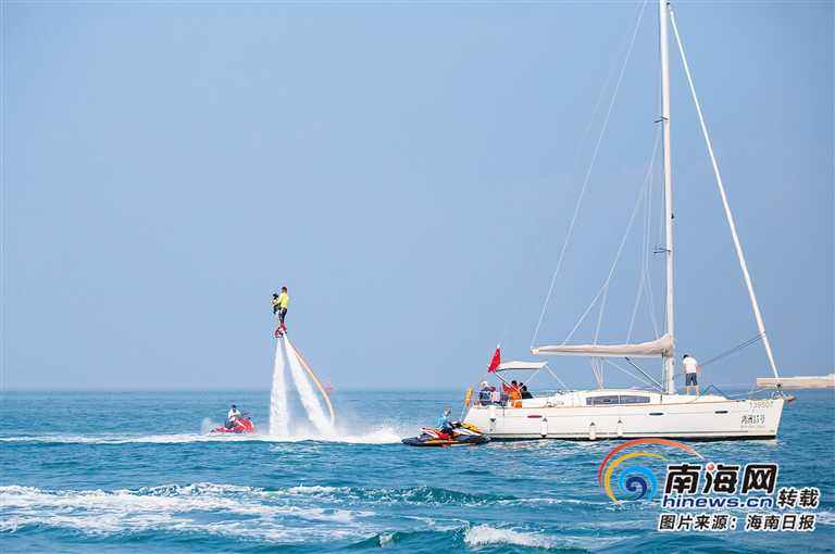 10月6日,游客在三亞乘游艇出海,體驗水上運動。三亞豐富游艇旅游產品,使得游艇旅游項目從奢侈消費變成大眾休閑活動,成為新的旅游消費熱點。 海南日報記者 武威 攝