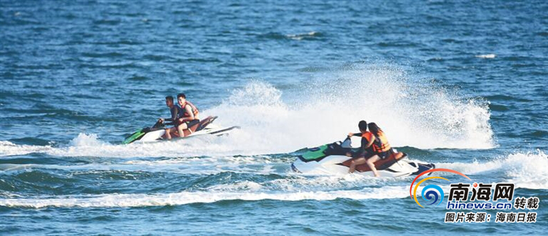 10月4日,游客在博鰲灣駕駛摩托艇游玩。 特約記者 蒙鐘德 攝