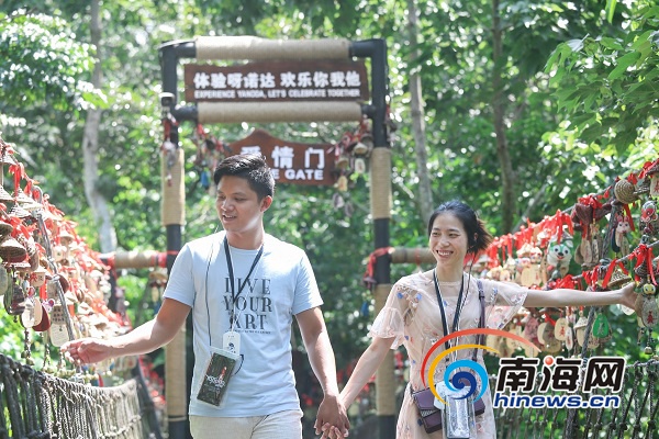 每天早上8時(shí),呀諾達(dá)雨林全體工作人員于十二生肖廣場(chǎng)齊跳手語舞《我們都是追夢(mèng)人》迎來各地游客,特色“V字禮”問候、抖音挑戰(zhàn)門、侏羅紀(jì)AR體驗(yàn)、精靈舞等互動(dòng)輪番點(diǎn)燃游客探秘?zé)崆椤3┧竺葘櫩破諛穲@、蘭花溪、幸福天道親近神秘?zé)釒в炅滞猓姸嘤慰瓦x擇解鎖花樣雨林刺激玩法,哇哎嚕玻璃觀景平臺(tái)、懸崖觀海秋千、高空滑索、踏瀑戲水等熱門體驗(yàn)項(xiàng)目紛紛排起長(zhǎng)隊(duì)。