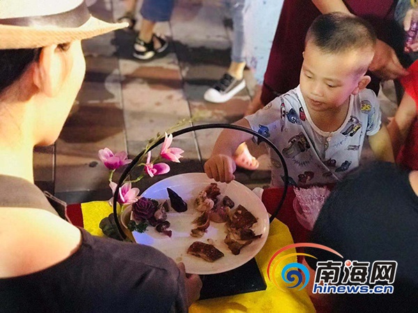 在時(shí)尚動(dòng)感的音樂中,“萌”力十足的少兒模特用精彩的走秀拉開了活動(dòng)的序幕。牛焰、玉苞港海鮮館、凡鳳雞道、金麥角啤酒、格桑家手工酸奶、客晶鹽焗文昌雞等幾家美食代表們?cè)谂_(tái)上展示自家特色美食,緊接著各種節(jié)目輪番上演,當(dāng)夜的尋嘗里幻化成一片充滿歡樂與美味的海洋。