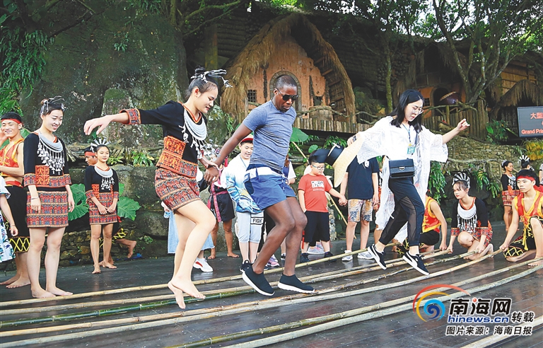 游客在海南檳榔谷黎苗文化旅游區游玩。 海南日報記者 王凱 通訊員 潘達強 攝