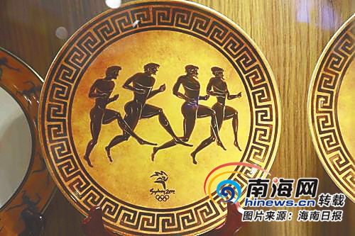 天福體育博物館收藏的奧運會紀念盤。海南日報記者 陳元才 攝