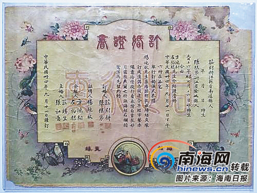 銘德票證博物館收藏的民國結婚證。