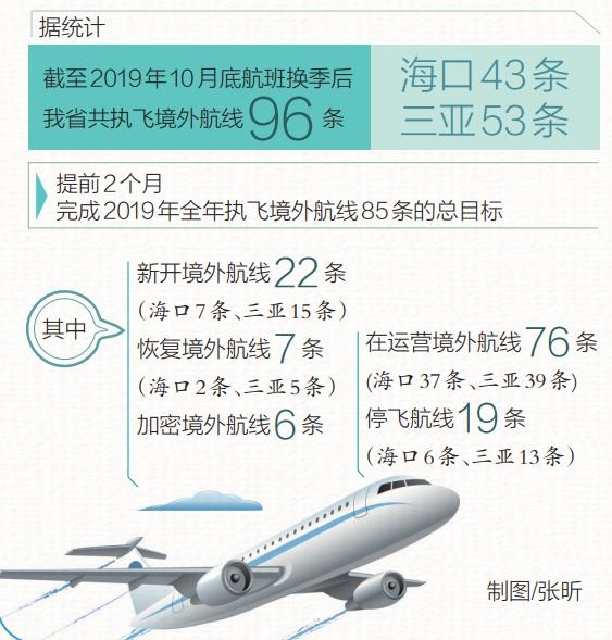 據(jù)統(tǒng)計,截至2019年10月底航班換季后我省共執(zhí)飛境外航線96條,提前2個月完成2019年全年執(zhí)飛境外航線85條的總目標。
