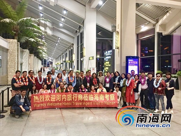 河內(nèi)旅行商在海口美蘭國際機場合影。海口旅文局供圖
