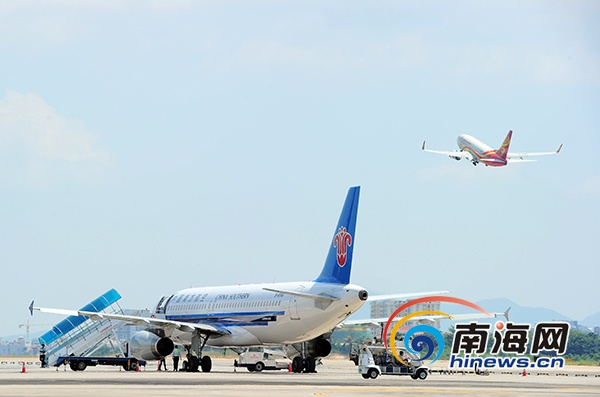 一架飛機從三亞鳳凰國際機場起飛。南海網(wǎng)記者 沙曉峰攝