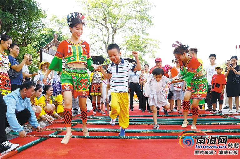游客在三亞南山景區跳竹竿舞。海南日報記者 武威 特約記者 陳文武 攝