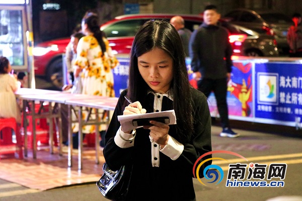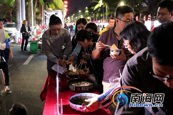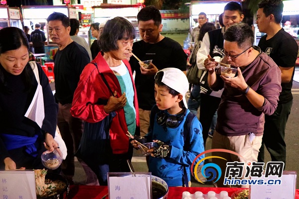 “久居海南,聽(tīng)說(shuō)海大南門(mén)夜市的小吃不錯(cuò),就過(guò)來(lái)試試。”評(píng)審團(tuán)成員孫先生告訴記者,他老家在陜西,來(lái)海南多年,他表示海大南門(mén)夜市的衛(wèi)生環(huán)境良好,美食品種多樣,秩序井然,是吃貨們品嘗美食的好去處,“而且這里的小吃很地道,吃完就想著下次啥時(shí)再來(lái)”。