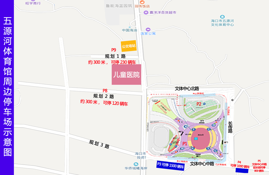 五源河體育館周邊停車場(chǎng)示意圖