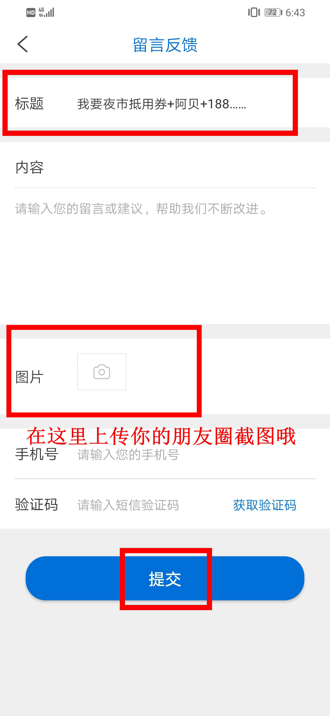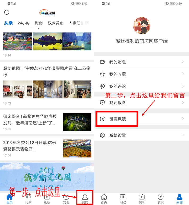 第二步:打開(kāi)南海網(wǎng)客戶(hù)端,點(diǎn)擊右上角,進(jìn)入留言反饋?lái)?yè)面填寫(xiě):“我要夜市抵用券+姓名+電話(huà)”,并將朋友圈分享截圖上傳,提交后即可成功參與活動(dòng)!