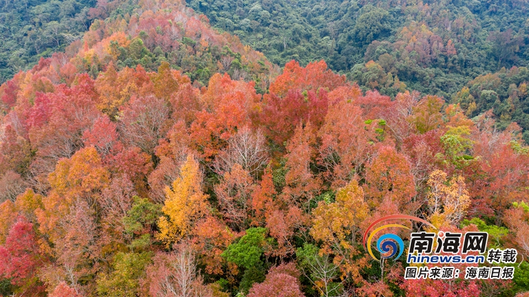 五指山的紅葉,紅得斑斕。 海南日報記者 李天平