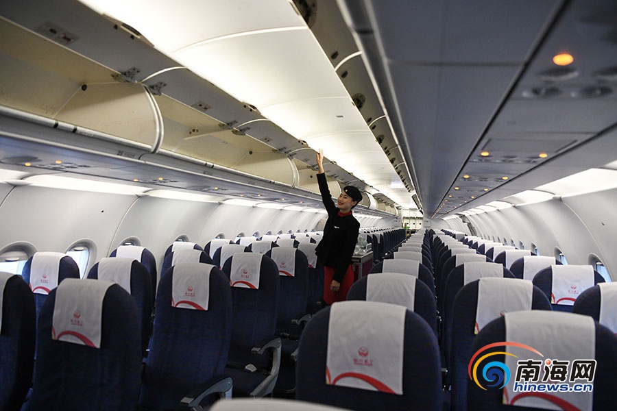 12月23日,一位空姐在3U8407航班上做起飛前的準備工作。南海網記者 沙曉峰攝