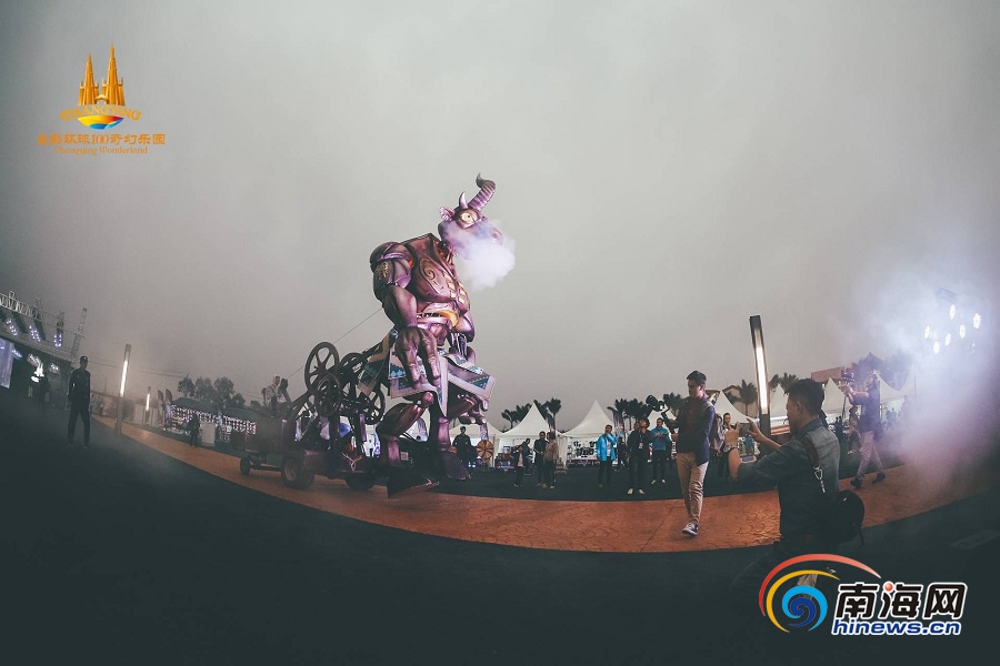29日狂歡節首日,南海網記者在長影環球100看到,絢麗多彩的花車巡游、流光溢彩的奇幻美燈、震撼華麗的DJ秀、炫酷驚險的摩托飛車、古靈精怪的小丑表演及明星演唱會等精彩節目輪番上演?;顒蝇F場還融入了VR設備、時尚美食、巨獸巡游等互動體驗式尖端設備,為現場游客帶來了難忘的跨年狂歡體驗。