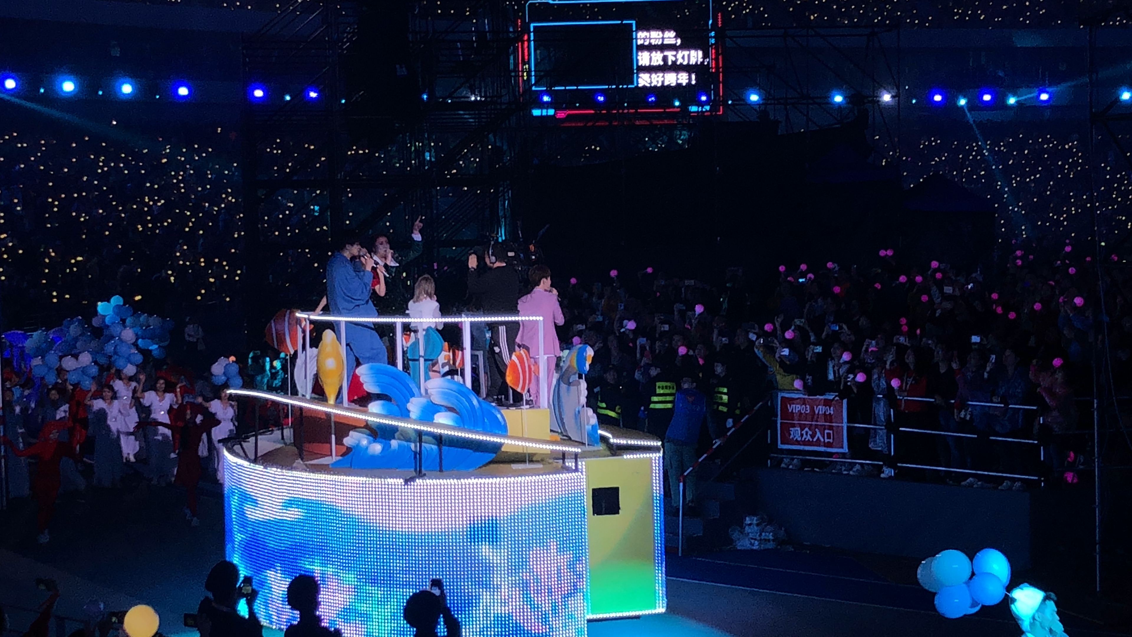 跨年演唱會(huì)現(xiàn)場(chǎng),閃耀的燈牌。網(wǎng)友供圖
