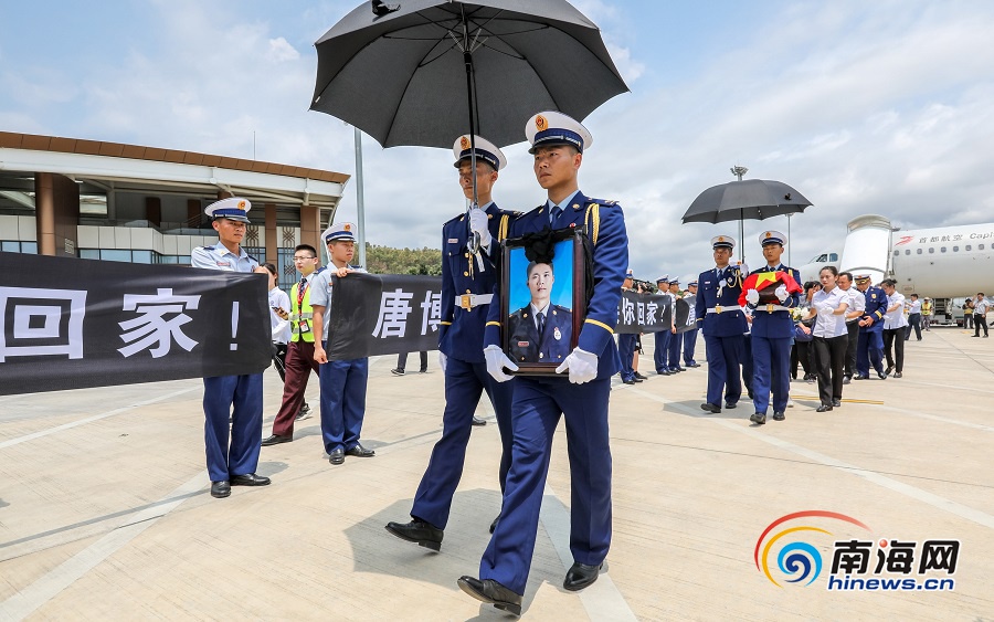 撲火英雄唐博英烈士回家4月5日13時(shí)25分,消防戰(zhàn)士手捧唐博英烈士的遺像和骨灰走向車(chē)隊(duì)。當(dāng)天13時(shí)10分,唐博英烈士的骨灰從四川成都飛抵三亞,來(lái)自三亞、陵水等地各界干部群眾、官兵等200余人在機(jī)場(chǎng)迎接撲火英雄回家。13時(shí)30分,護(hù)送唐博英烈士骨灰的車(chē)隊(duì)從三亞機(jī)場(chǎng)出發(fā),許多群眾自發(fā)的在沿途路邊向英雄致敬。15時(shí)許,車(chē)隊(duì)抵達(dá)烈士的家鄉(xiāng)陵水黎族自治縣本號(hào)鎮(zhèn)時(shí),近萬(wàn)名群眾手拉橫幅、手捧鮮花肅立道路兩旁迎接英雄回家。15時(shí)20分,唐博英烈士追思會(huì)在他家中舉行,社會(huì)各界群眾在會(huì)場(chǎng)沉痛悼念。約16時(shí)30分,本號(hào)鎮(zhèn)下起小雨,但在唐博英烈士靈堂前吊唁的人群仍絡(luò)繹不絕。