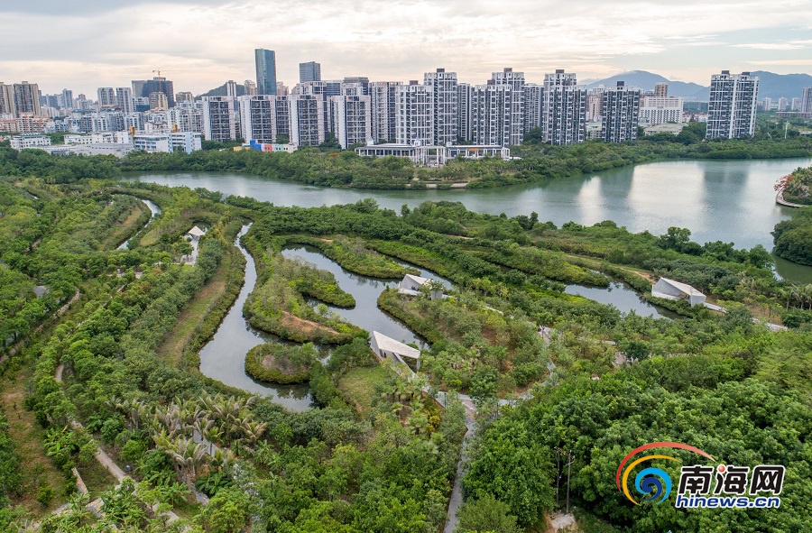 2019年06月25日三亞 三亞紅樹(shù)林生態(tài)修復(fù)工程榮膺國(guó)際獎(jiǎng)項(xiàng) 被評(píng)為2019AZ最佳景觀獎(jiǎng) 6月25日,低空俯瞰三亞市春光路紅樹(shù)林生態(tài)公園,昔日的硬質(zhì)河岸已經(jīng)成為今天郁郁蔥蔥的紅樹(shù)林生態(tài)公園。