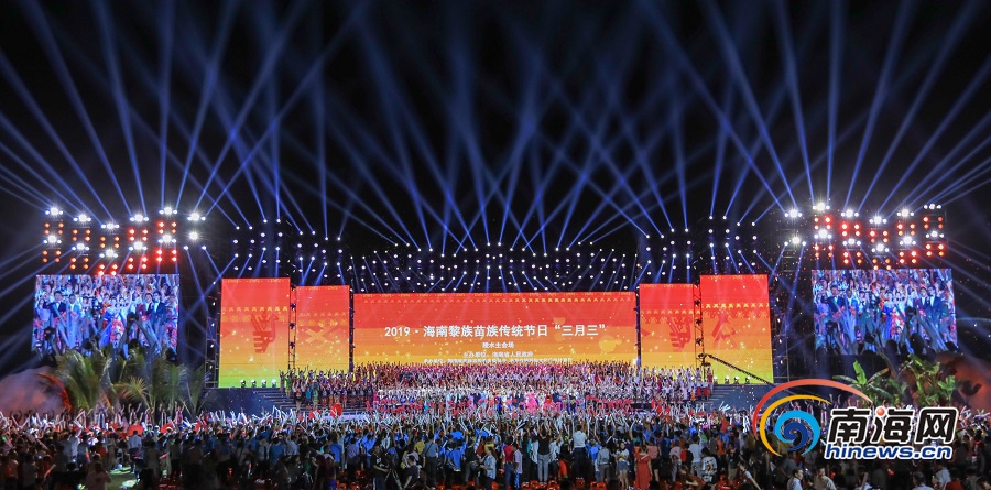 2019年04月07日陵水 海南“三月三”節(jié)慶活動(dòng)開(kāi)幕 4月7日晚,2019年海南黎族苗族傳統(tǒng)節(jié)日“三月三”主會(huì)場(chǎng)開(kāi)幕式暨主題文藝晚會(huì)在陵水黎族自治縣舉行。