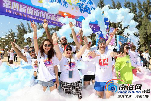 不僅有藝術范兒,還有運動魅力。在本屆歡樂節主、分會場活動中,2019吉成健美之夜暨第九屆三亞國際沙灘健美先生比基尼小姐大賽、2019第十屆海南儋州國際馬拉松賽、2019年第十屆萬寧國際沖浪賽、2019越山向海人車接力海南年終巔峰賽等賽事,吸引游客和群眾廣泛參與,僅2019海南儋州國際馬拉松賽就吸引了來自20多個國家和地區的1.8萬名選手激情角逐。海南“體育+旅游”融合發展,正在成為又一個旅游消費亮點。