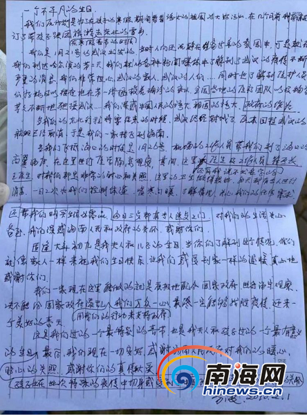 方先生為美蘭區(qū)工作人員寫的感謝信。通訊員供圖
