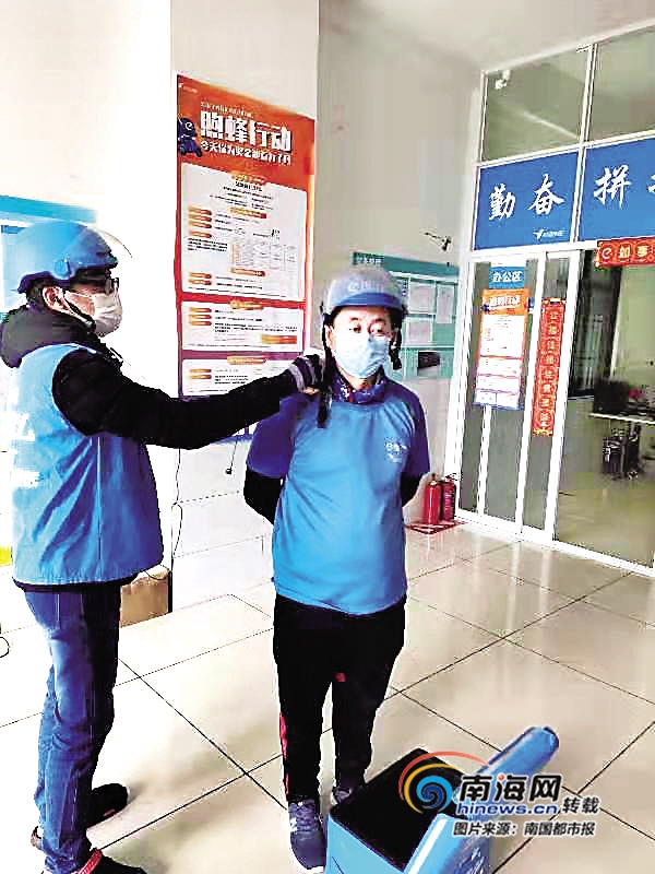 據了解,某平臺每個站點為每個騎手每天配發3只口罩,要求3個小時左右更換一次。記者了解到,該平臺海南區域已投放10萬只口罩,確保每個外賣騎手都能及時更換口罩。