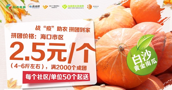 疫情當前,由南海網、南國都市報、海南愛心扶貧網、聚農優品、豐贊科技等單位聯合發起了“社區團長公益團購”農產品直供模式,有效實現“當地產品當地銷”。記者2月28日了解到,南海網將再次創新手段,推出“百團聯采 愛心助農”社區團購直播大行動,用互聯網思維激活私域流量資源,同時邀請市縣主要領導助陣直播現場,為社區公益團長打call。首場直播將于2月29日上午開播,直播單品為白沙扶貧農產品60萬斤待銷黃金南瓜,價格低至2.5元/個(4-6斤),敬請關注下單搶購!