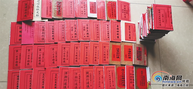 “海南齋戲規模有大有小。”王云光說,小齋演唱1天-3天,大齋甚至可以連續演唱5天-13天,而不管大齋、小齋,每一場齋戲的演唱內容都絕不雷同。“唱本內容相同,但齋文會根據做齋的內容有所變化。”說到這里,王云光有些惋惜:“現在會寫齋文的人已經寥寥無幾,我非常喜歡這個工作,于是主動承擔起了寫齋文的工作。”