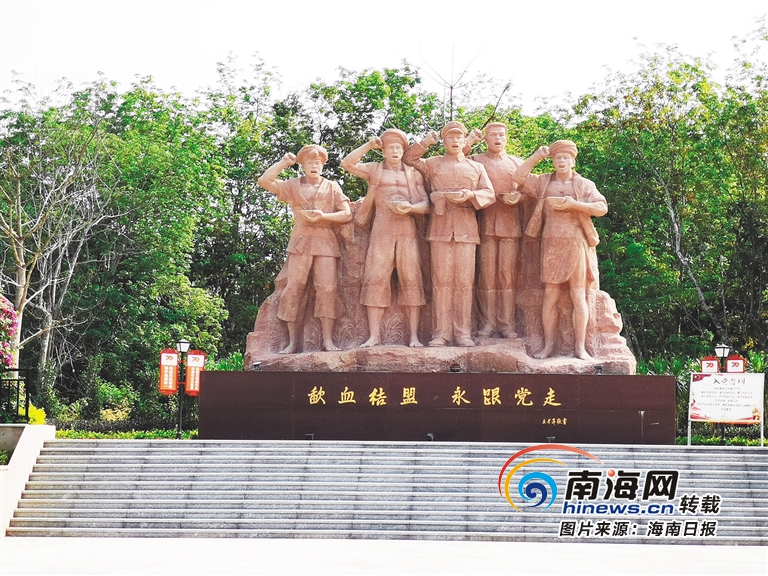 為了紀念這段光輝的歷史,2018年,儋州市委市政府投入資金1600多萬元建設“歃血結盟紀念園”,由歃血結盟五人雕塑像、臨儋聯縣縣委縣政府駐地舊址紀念碑、瓊崖縱隊第四支隊駐地舊址紀念碑、第一次會面舊址紀念碑、五角紀念亭、紀念長廊、紅軍井等幾大部分組成。該園區實現了民族資源、紅色資源與綠色旅游的融合發展,如今已成為當地紅色文化旅游的經典路線。
