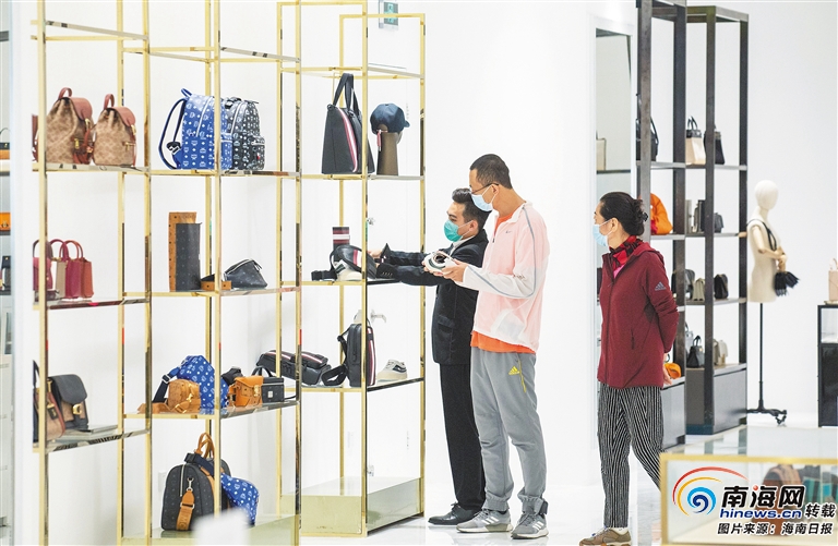4月14日,游客在三亞國際免稅城紅樹林免稅體驗店近距離體驗免稅商品。中國旅游集團旗下三亞國際免稅城在三亞增設的兩家市內免稅體驗店已經開業,分別位于三亞灣紅樹林度假酒店和南山旅游景區。