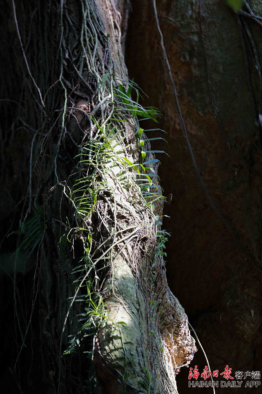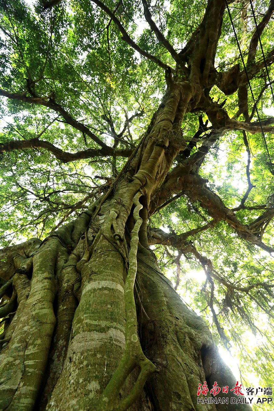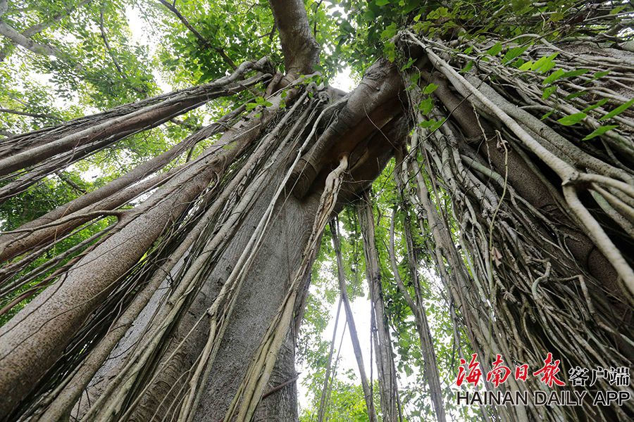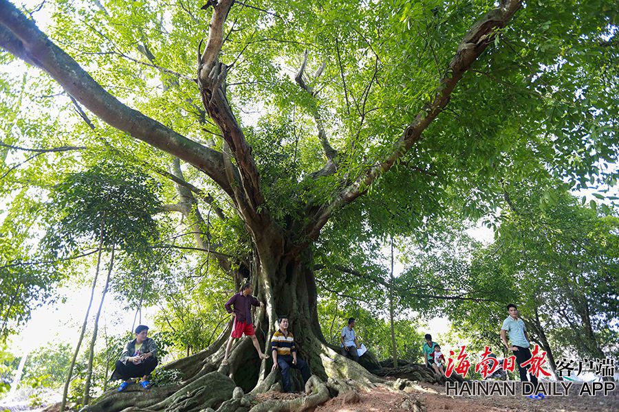 在儋州市大成鎮推賽村,村民拍攝古樹。