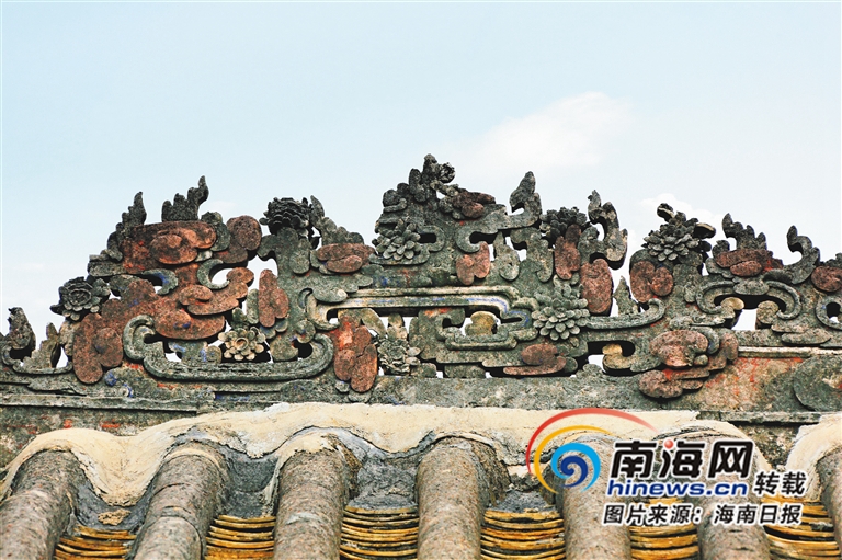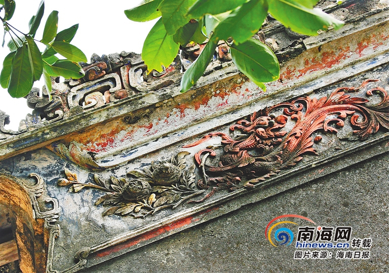 林家大院精致的木雕門、瓦房屋脊的翹頭、屋檐下的精美壁畫和別具一格的彩紋地磚等,體現(xiàn)了較為高超的傳統(tǒng)建筑技藝,堪稱海南古民居的經(jīng)典之作。