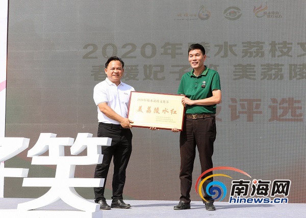 活動(dòng)為獲評(píng)“美荔陵水紅”的荔枝種植戶頒發(fā)獎(jiǎng)項(xiàng)。通訊員 胡陽(yáng) 攝