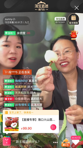 海口農業農村局局長陳芳在淘寶直播推介海口火山荔枝王。淘寶供圖