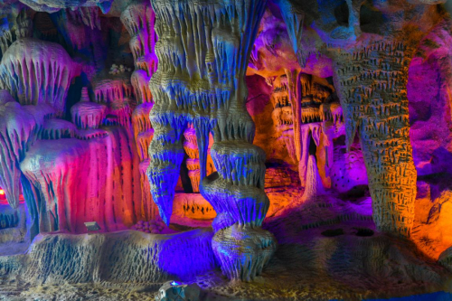 滑道漂流總面積約為3800平方米,設計路線驚險刺激、九曲回旋,帶你盤桓于藍天、碧水與青山間,用全新視角欣賞篁嶺的旖旎風光。飛舟在激流中擊水勇進,清涼的山泉飛濺,跌宕起伏的水道和不斷旋轉的橡皮艇引發此起彼伏的尖叫!當你進入清涼的溶洞中,觸手可及的石筍、石幔、石帷、石瀑布等形態各異的鐘乳石環繞身周,在七彩燈光的輝映下展示著自己絢麗多彩的身姿,處處琳瑯滿目、美不勝收。