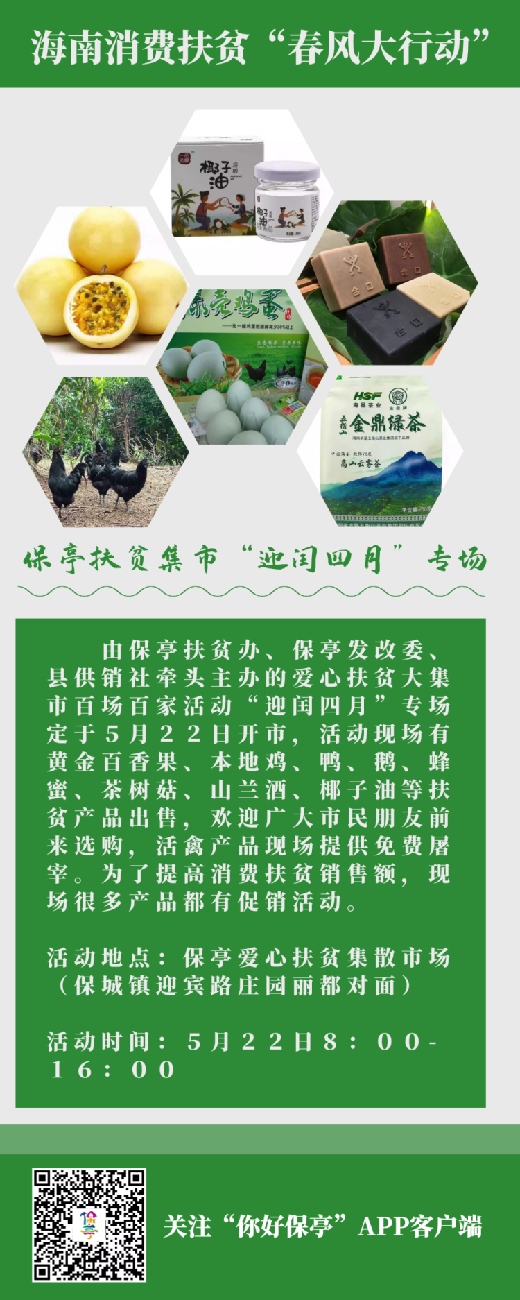海南消費(fèi)扶貧“春風(fēng)大行動(dòng)” 保亭扶貧集市“迎閏四月”專場(chǎng)5月22日開市