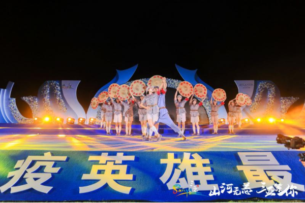婚禮儀式及晚宴中,節目編排中盡展海南文化魅力。其中,由海南文藝界人士參與創作的《緣定鹿城》《逆風而行》等歌舞表演,以感人的歌詞、真誠的言語、樸素的情感,盡展抗疫英雄不顧安危、奮勇拼搏的犧牲奉獻精神, 表達抗疫工作者惜別愛人、以身許國的崇高精神。