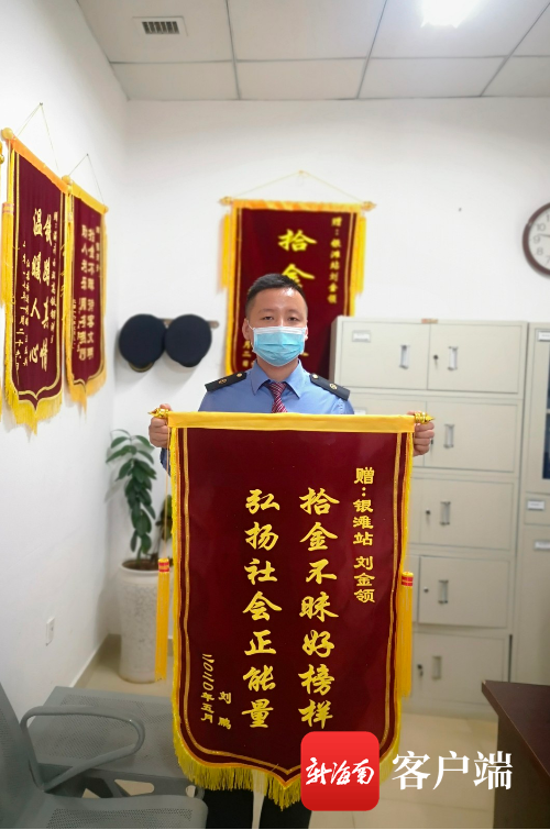 新海南客戶端、南海網、南國都市報6月7日消息(記者 王小暢 通訊員 王蕾)6月6日下午,海南環島高鐵儋州銀灘站客運值班員劉金領收到了旅客劉先生送來的錦旗。