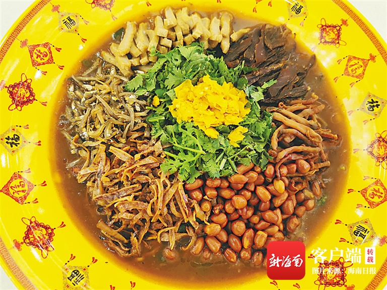 陵水酸粉是當地特色小吃,用米粉絲、牛肉干、沙蟲干、魚餅、香菜、酸醋、辣椒等十多種食料配制而成,具有甜、酸、香、辣等特點,深受大眾喜愛。