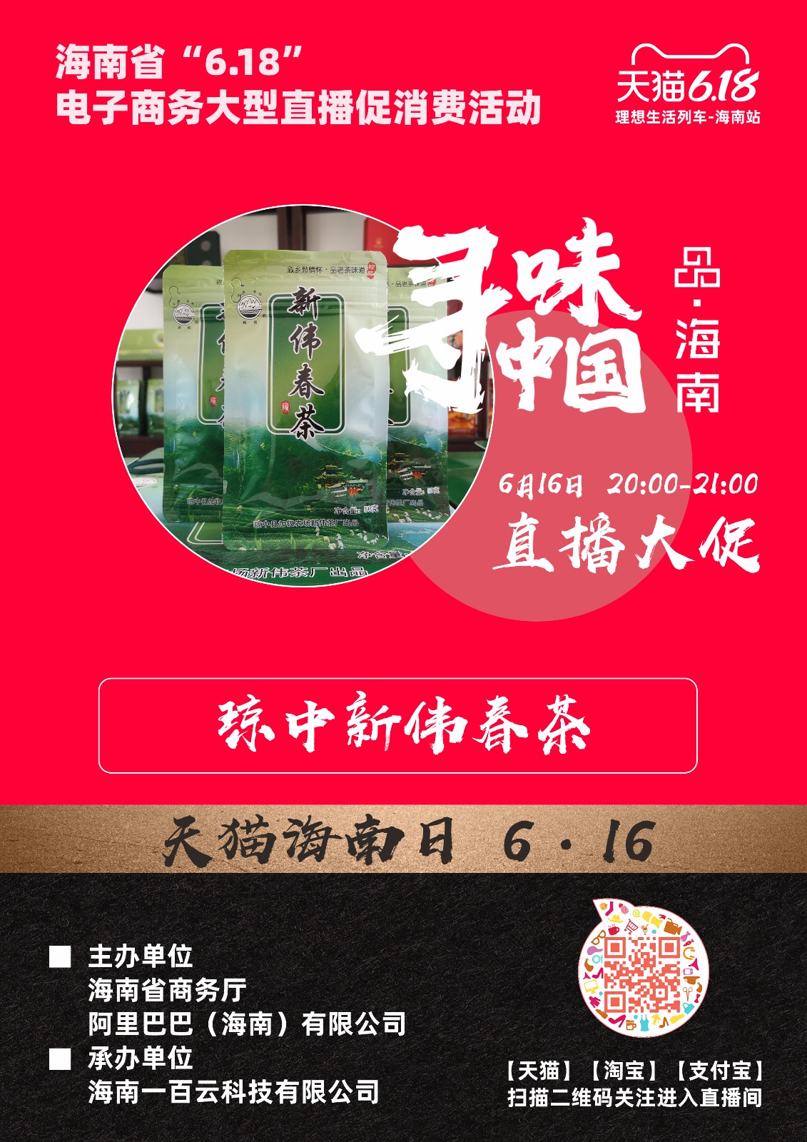 新海南客戶端、南海網、南國都市報6月16日消息(記者 鐘圓圓)“6·18”優惠大促瓊中專場來了!6月16日晚8時—9時,瓊中黎族苗族自治縣副縣長劉云俊將在淘寶直播間推介瓊中的優質農產品。