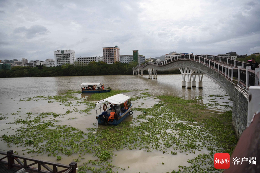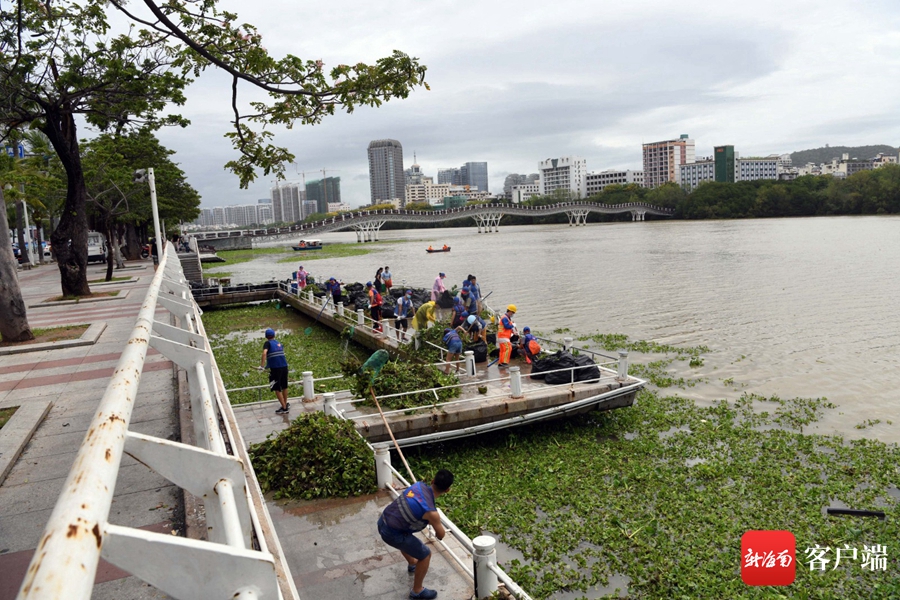 連日來,三亞連降暴雨,三亞河上游的水浮蓮順流而下,漂浮在三亞河。一些市民和志愿者主動和園林綠地所的工作人員一起加入到清理水浮蓮的隊伍中。
