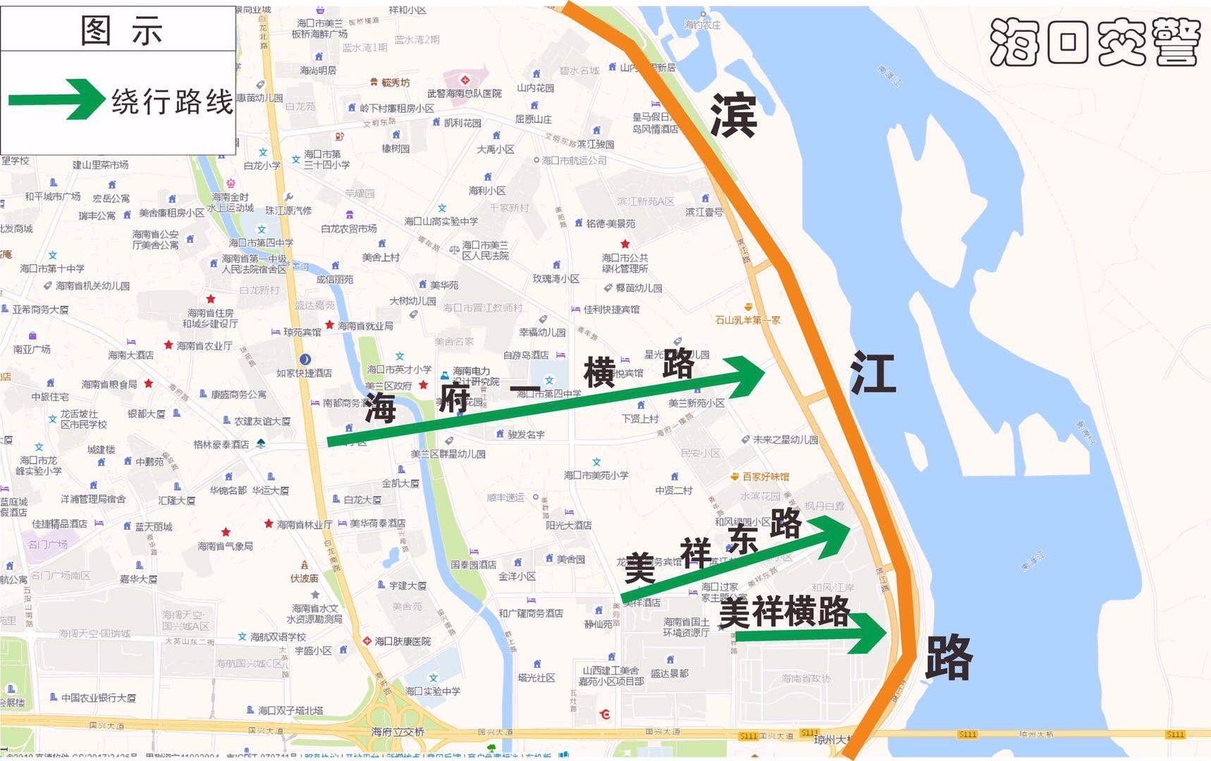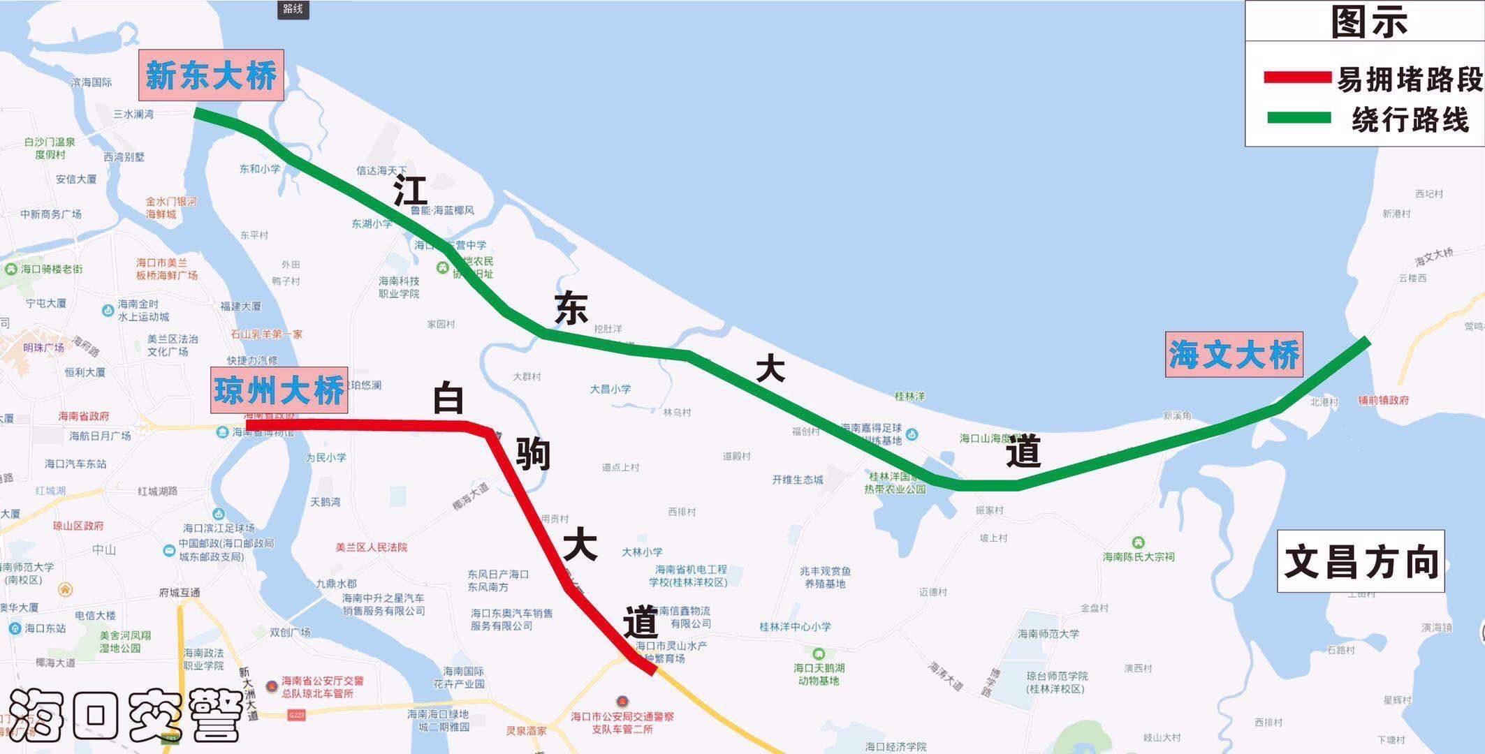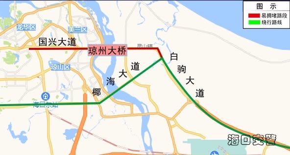 (2)瓊州大道南片區(如瓊山區)駕駛人可取道椰海大道直接前往白駒大道進出城。