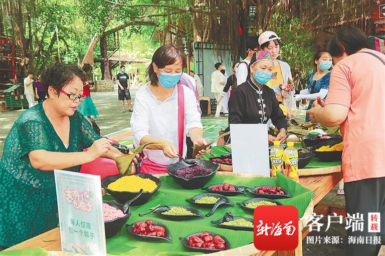 6月25日,海南檳榔谷黎苗文化旅游區(qū)舉辦多樣活動,包括端午祈福快閃、包黎家三色粽子、擲色子趣味游戲等。通訊員 潘達強 攝