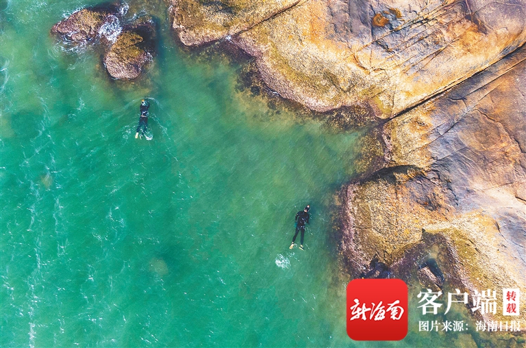 6月26日清晨,文昌市鋪前鎮(zhèn)木蘭灣海邊,來自海口的潛水愛好者在浮潛,暢享清涼。海南日報記者 宋國強 攝